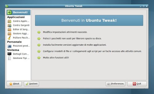 Quindi Ubuntu Tweak lo possiamo installare non solo su Ubuntu, ma anche su Kubuntu, Xubuntu, Lubuntu e derivate come per esempio Linux Mint. Non possiamo invece installarlo su Debian.