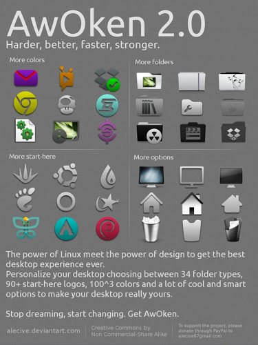 AwOken è uno dei set di icone tra i più apprezzati e utilizzati nei temi per Gnome, il successo è dovuto sopratutto all’eleganza e l’ottima realizzazione e anche dalla possibilità di personalizzarle.