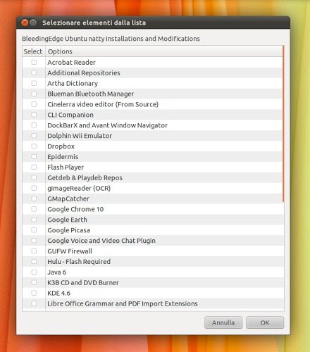 Ricordo che Bleeding Edge funziona solo su Ubuntu 11.04 Natty