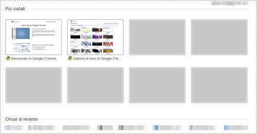 Chi utilizza Google Chrome avrà sicuramente notato che quando si crea una nuova scheda viene aperta una nuova scheda la quale ci mostra le miniature degli otto siti più visitati e più cercati e le schede chiuse di recente.