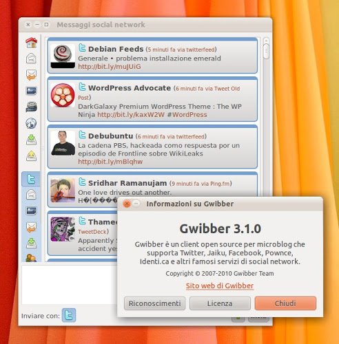 Per aggiornare Gwibber 3.1.0 su Ubuntu (11.04 – 10.10 – 10.04) basta da terminale digitare: