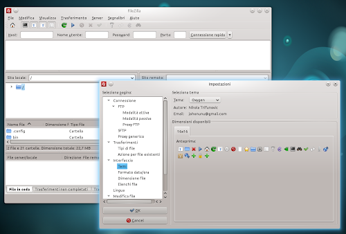 a questo punto avviamo il nostro FileZilla e andiamo in modifica -> impostazioni -> Interfaccia -> Temi e a sinistra sul seleziona Tema scegliamo Oxygen e clicchiamo su Ok per confermare.