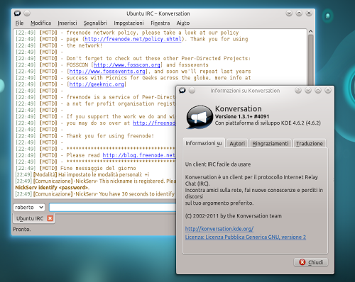 Konversation è un clien IRC specifico per ambienti desktop KDE. Konversation.