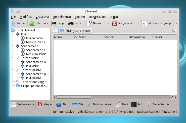 KTorrent è un client BitTorrent per KDE sviluppato in C++ usando il toolkit Qt, supporta download, upload avanzato, ricerca nei vari motori, e UDP Trackers.