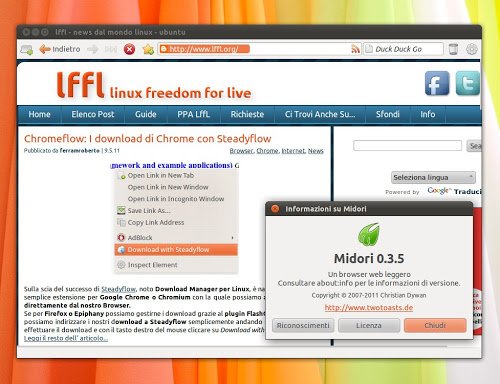 Per conoscere tutte le novità del nuovo Midori 0.3.5 consiglio di consultare QUESTA pagina.