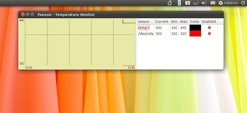 Psensor ottima applicazione, basata su lm-sensors, per controllare la temperatura del nostro hardware. Permette di accedere alle informazioni dei sensori di temperatura, voltaggio e velocità della ventola, inoltre avremo un semplice grafico sempre aggiornato per controllare le variazioni delle temperature nei vari periodi di tempo. Una volta avviata troveremo PSensor nella nostra tray un semplice indicato il quale con un semplice click possiamo avviare la finestra che ci indica tutte le informazioni da noi precedentemente impostati.