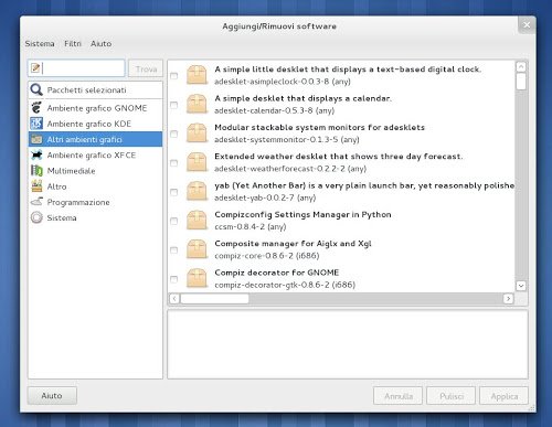 Grazie a PackageKit potremo installare le applicazioni che vogliamo grazie una semplice interfaccia, basta selezionare i pacchetti da installare o rimuovere e cliccare su Applica.