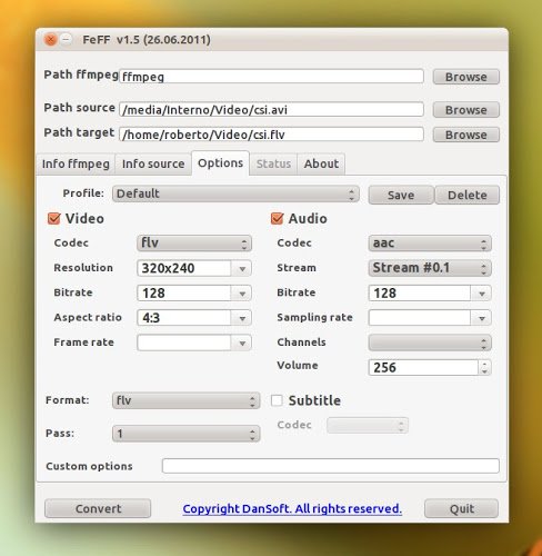 Da molti utenti indicato come la miglior applicazione per convertire file multimediali ha però il problema che per utilizzarlo dobbiamo agire da terminale e conoscere le molte opzioni per convertire i nostri file. Per facilitarci l’utilizzo di FFmpeg è stato realizzato Feff ossia una GUI per FFmpeg.