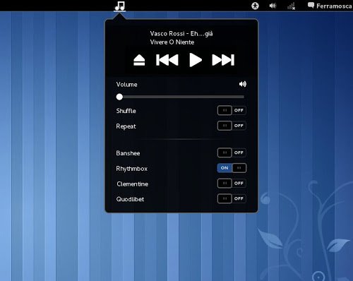GNOME Shell Mediaplayers è una semplice estensione per Gnome 3 la quale ci permette di gestione delle tracce musicali in esecuzione dei player audio Banshee, Rhythmbox, Clementine e Quodlibet.