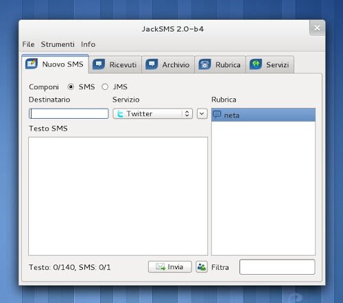 JackSMS una delle più diffuse e migliori applicazioni per inviare SMS gratis da Ubuntu sfruttando internet, semplice da usare e completamente gratuito.