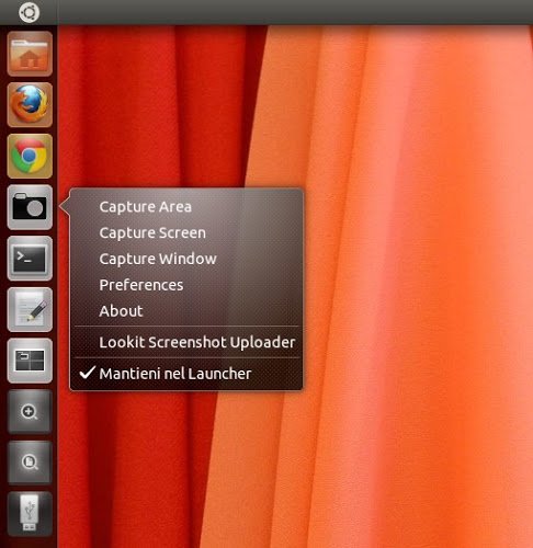 Rimane comunque il collegamento nella nostra area di notifica per gestire e configurare il nostro Lookit. Per aggiungere Lookit nella nostra Launcher o barra laterale una volta installato dal dash trasciniamo l’icona nel nostro Launcher. Può succedere che non si visualizzi l’icona nel Launcher basta riavviare la nostra Distribuzione per avere il collegamento nel nostro Launcher completo di icona.