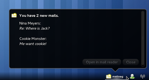 Mailnag è una semplice estensione per Gnome Shell la quale ci permette di notificarci i nuovi messaggi di posta elettronica e solo in caso volessimo leggerli potremo avviare il nostro Evolution o altra applicazione o Browser da noi predefinita per al ricezione / invio delle email direttamente dalla notifica. L’estensione Mailnag si presenta come alternativa al famoso Popper, anche se è ancora in fase di sviluppo e non supporta tutte le funzioni del precedente notificatore.