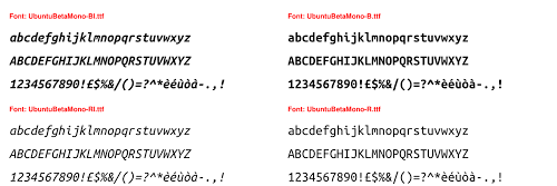 Ricordo che i nuovi font Ubuntu Monospace sono ancora in fase di sviluppo e mancano ancora di qualche carattere negli accenti e simboli, se volete testarli basta che mi inviate un’email e commentate questo articolo che vi posto il link del file contente i font e la guida per installarli