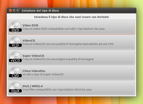 DeVeDe è un’applicazione utile per la creazione di DVD e CD Video (VCD, SVCD o CVD). I formati video disponibili sono tutti quelli supportati da MPlayer e grazie DeVeDe possiamo creare in maniera semplice i nostri DVD/CD pronti per essere riprodotti da un qualsiasi home player.