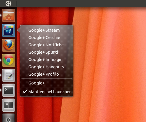 Grazie a Google+ Launcher potremo accedere direttamente a Google Plus dal nostro Unity, potremo andare alla pagina dedicata alle cerchie, immagini ecc con un semplice click dalla barra laterale del nostro Ubuntu.