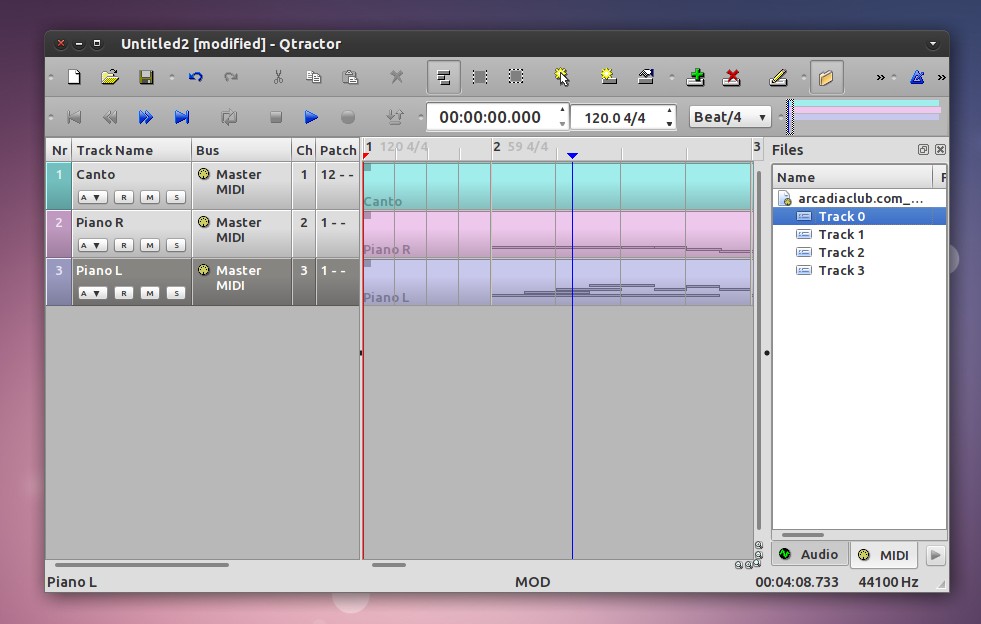 Grazie a Qtractor potremo modificare i file midi caricati in input senza quindi andare a modificare il file originale.