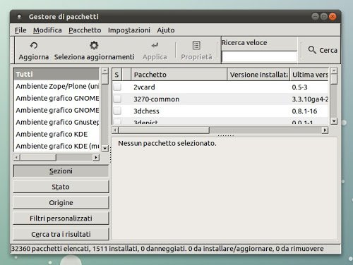 ora possiamo avviare Synaptic ed ecco il tema con un’interfaccia corretta (come da immagine sotto)