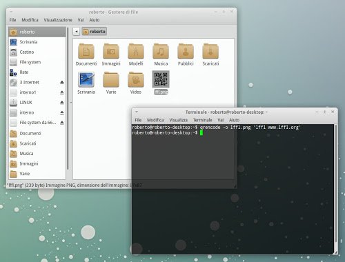 se per esempio vogliamo realizzare un codice Qr del link di lffl e salvarlo in un immagine denominata lffl.png basta digitare da terminale: