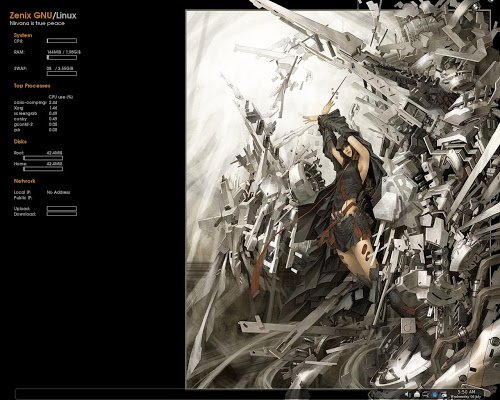 Particolarità che troviamo in Zenix Os e sulle principali Distribuzioni “Leggere” è aver di default Conky il quale ci permette di verificare i consumi del nostro Sistema direttamente dal desktop, su Zenix Os è possibile scegliere varie configurazione o disattivarlo direttamente dal menu