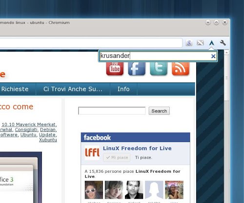 Possiamo inoltre effettuare ricerche anche selezionando il testo da ricercare da una pagina web (per esempio il nome di un’applicazione) e con il tasto destro del mouse cliccare su cerca con Arch. Arch Linux Package Search aggiunge anche affianco della barra degli url l’icona con la quale con un click si aprirà una barra di ricerca alternativa.