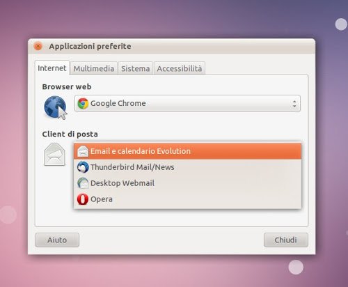 Se però vogliamo gestire le email dal nostro Browser dobbiamo impostare il nostro Client di Posta preferito non più con Evolution ma per esempio Gmail, Yahoo ecc.