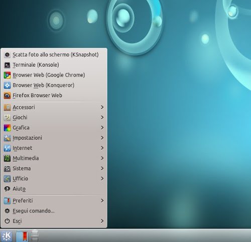 Ma per fortuna possiamo ripristinare il buon vecchio menu di KDE il quale ci permette di consultare e avviare qualsiasi applicazione con molta facilità. Inoltre nel “classico” menu di KDE troveremo in alto le ultime applicazioni avviate ed inoltre (come dal resto tutto l’ambiente desktop KDE) ci permette di personalizzarlo come meglio vogliamo.