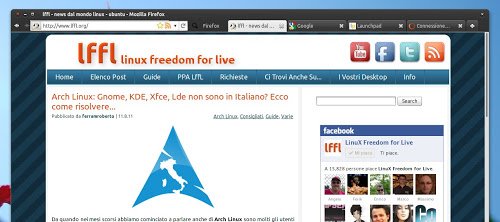 La barra degli url sarà allargata quando andremo ad inserire un nuovo url poi si rimpicciolirà durante la normale navigazione. Particolarità il menu viene spostato quasi al centro del nostro Browser, possiamo comunque spostarlo dove vogliano andando in proprio nella funzione Personalizza accessibile dal nostro menu Opzioni di Firefox.