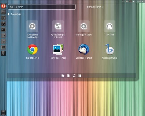 Grosse novità arrivano dal Dash rimossi i 2 Lens dal Launcher introdotti in Natty (per intenderci i 2 pulsanti per la ricerca delle applicazioni e dei file) ora difatti sono integrati direttamente nella finestra del Dash.