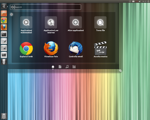 Il Dash è stato rimodernato difatti sul Launcher sono stati rimossi i 2 Lens per la ricerca delle applicazioni e dei file e ora sono integrati nel nuovo Dash (novità presente anche nella versione 3D).