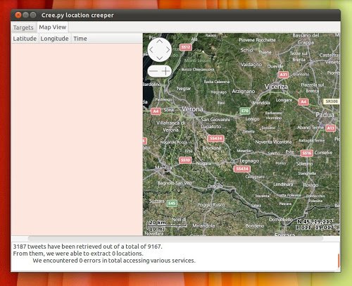 A tale scopo è stata realizzata Creepy (o Cree.py) una semplice applicazione, scritta in Python, la quale permette di recuperare informazioni di geoposizionamento da vari Social Network o servizi online per ricostruire i movimenti di una persone e tracciarne gli spostamenti.