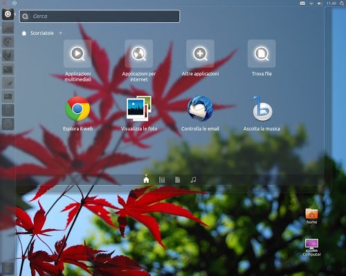 Migliorato anche il Launcher e il nuovo tasto posto per avviare il Dash il quale diventa trasparente quando avviato il Dash assieme a tutta la barra, inoltre sono presenti alcuni temi per personalizzare il nostro Launcher, dal plugin di Unity potremo quindi non solo gestirne l’opacità ma avremo a disposizione nuovi temi indicati come BackLight mode.