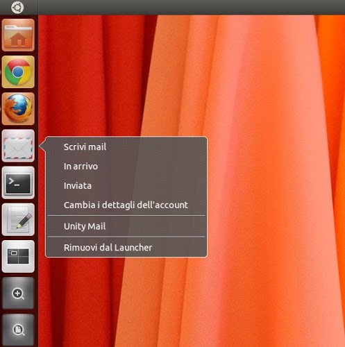Una volta installato basta trascinare l’icona di Unity Mail al Launcher.