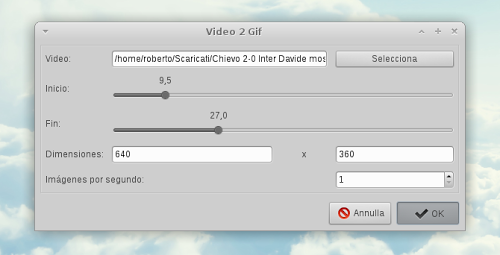 a questo punto basta scaricare Video2Gif da questo link estrarre il file tar.gz e dare un doppioclick sul file video2gif.