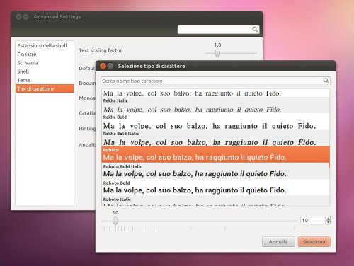 Una volta inseriti possiamo utilizzarli di defaut per il nostro sistema attraverso il gestore dei caratteri, se utilizziamo Gnome 3 occorre installare Gnome Tweak Tools.