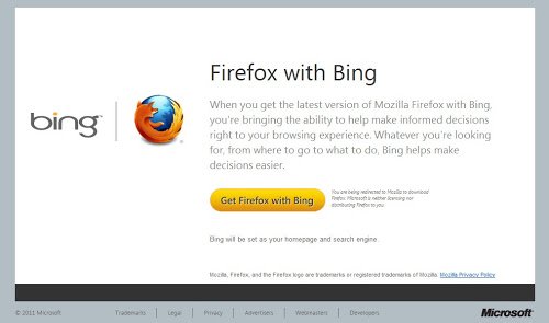 Quando ieri ho segnalato la notizia sulla pagina di Google+ molti utenti avranno creduto una fake ed invece è tutto vero, da poco è arrivata una versione di Firefox (per fortuna non disponibile per Linux) con motore di ricerca predefinito Bing e non Google come la versione di default. Inoltre per gli utenti che utilizzano Firefox “normale” ci verrà suggerito di installare l’add-on per Bing il quale imposterà il motore di ricerca di Microsoft invece di Google.