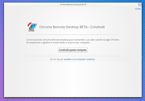 Ricordo per sia per condividere in remoto il nostro Pc che per gestire un Pc in remoto occorre avere installata l’applicazione per Chrome / Chromium