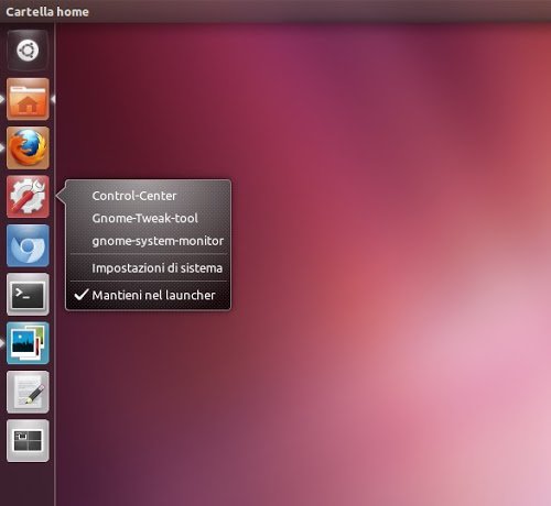 Grazie a Gnome Control Center QuickList potremo accedere direttamente dal nostro Launcher a Centro di Controllo di Gnome (Control Center), Gnome Tweak Tool e al Monitor di Sitema (gnome-system-monitor) il tutto basta cliccare sull’icona del collegamento con il tasto destro del mouse.