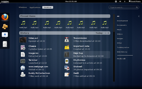 Al riavvio avremo il nostro Gnome Shell Zeitgeist integrato nella nostra Dashboard.