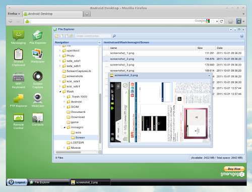 Grazie a Remote Web Desktop potremo gestire i file presenti come salvarli nel nostro pc oppure modificarli, eliminarli ecc inoltre possiamo gestire anche gli SMS: inviare, leggere e gestire i messaggi presenti nel nostro SmartPhone o Tablet Android direttamente dal Browser. Tramite il collegamento sicuro attraverso VNC server e viewer, possiamo gestire il nostro SmartPhone da qualsiasi parte del mondo, ma non è finita con Remote Web Desktop possiamo utilizzare il nostro SmartPhone come una WebCam per il nostro Pc, gestirne i contatti, cambiarne lo sfondo, installare nuove applicazioni e molto altro ancora.