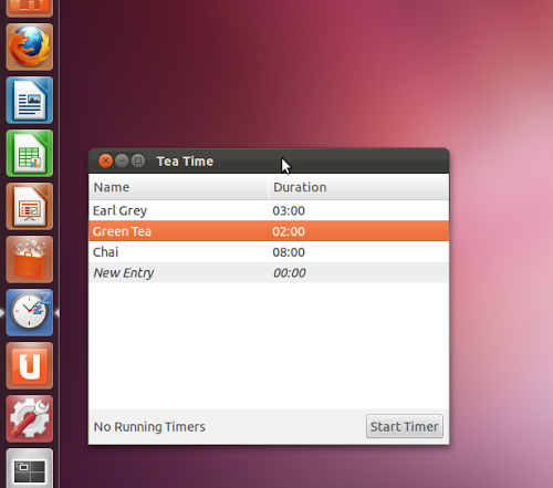 Realizzato appositamente per l’ambiente desktop Unity una volta avviato TeaTime ci permetterà di impostare le nostre pause direttamente dal collegamento del Launcher, possiamo gestire più pause il tutto grazie ad una semplice interfaccia semplice ed intuitiva.
