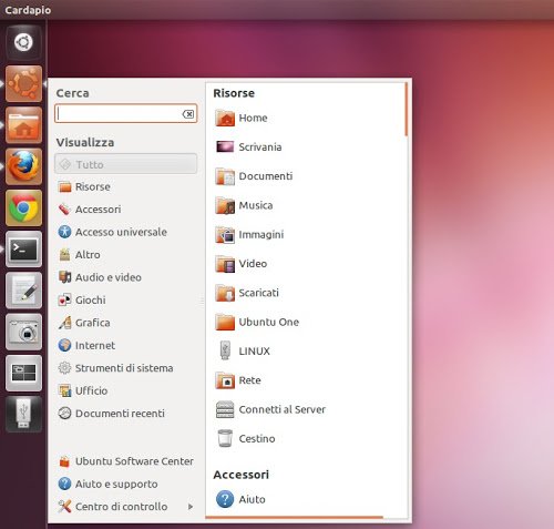 Unity è un nuovo ambiente di default su Ubuntu il quale cambia radicalmente le abitudini di gestione del nostro Desktop, grazie alla nuova Dash potremo velocemente ricercare e avviare le applicazioni installate nella nostra Distribuzione. Per tutti quegli utenti che erano abituati al buon vecchio menu trovarsi con il nuovo Dash è risultato alquanto un problema dato che prima con pochi semplici click sul mouse potevamo accedere a tutte le nostre applicazioni ora invece o digitiamo il nome dell’applicazione oppure dobbiamo ricercarla nell’elenco con tutte le applicazioni installate.