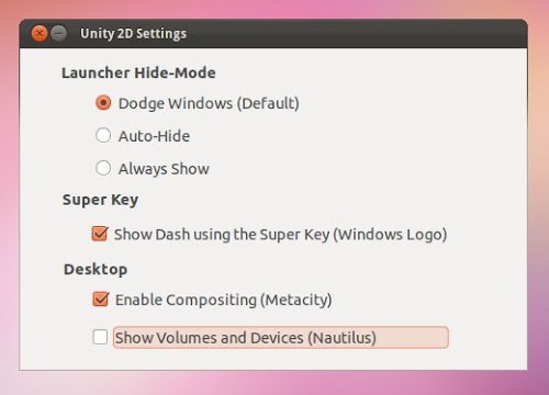 Unity 2D Settings è un semplice tool con il quale possiamo personalizzare alcune funzionalità di Unity 2D come ad esempio mantenere sempre visibile il Launcher oppure attivare il Compositing Manager.