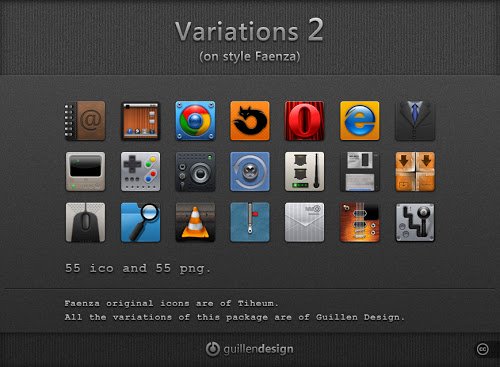 VARIATIONS 2 è una collezione di icone realizzate in 2 formati PNG e Ico (quindi possiamo utilizzarle anche su Microsoft Windows) che offre delle varianti alle tanto amate icone Faenza.