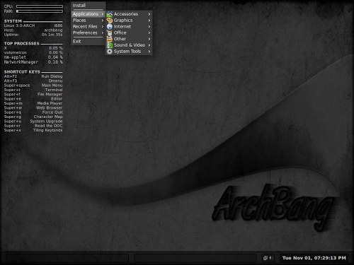 Nuovo rilascio per ArchBang la famosa e tanto amata Distribuzione Linux basata su Arch Linux con ambiente desktop OpenBox è da pochi giorni presente con la nuova versione 2011.11 che porta con se molte interessanti novità, vediamole in dettaglio.