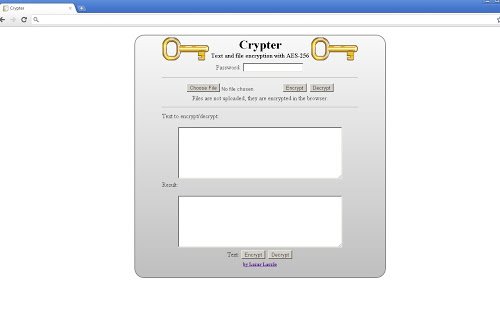 Crypter è una semplice ma utilissima applicazione con la quel possiamo crittografare / decifrare velocemente i nostri documenti direttamente dal nostro Browser. Estremamente sicura grazie alla criptatura AES256 ci permetterà rendere il nostro testo in un testo cifrato rendendolo illeggibile per chiunque. Solo la persona che ha la password di decodifica potrà decifrare il messaggio contenuto o il documento.