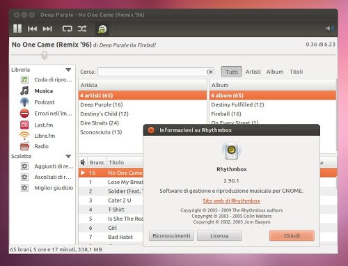 Inoltre Rhythmbox offre è molto più veloce nell’avvio e più performante e occupa meno spazio nel cd ed inoltre è perfettamente integrato con il nuovo Gnome 3.
