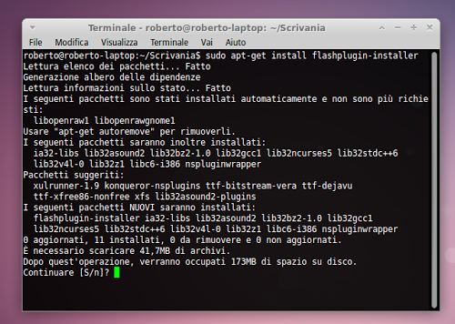A questo punto installiamo Flash Player 11 nativo per 64Bit su Ubuntu per farlo basta da terminale digitare: