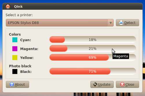 Per poter monitorare i livelli d’inchiostro della nostra stampante su Ubuntu e derivate possiamo utilizzare Qink una semplice applicazione, scritta in Qt e basata su libinkleve.