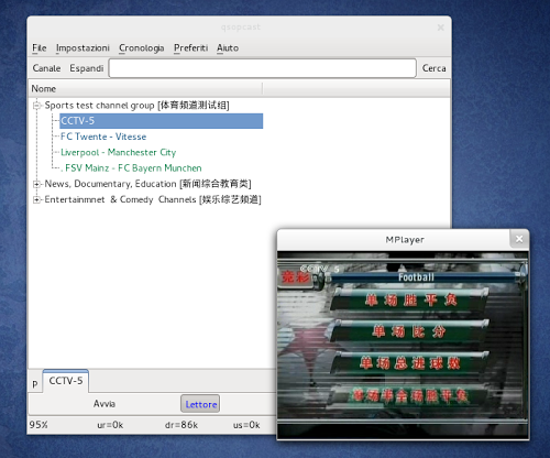 Oggi vi voglio presentare un progetto “datato” Qsopcast per la visualizzazioni di canali tv e radio in streaming .sop ma non per questo non funzionante. Qsopcast è una semplice GUI si sopcast scritta in QT con la quale attraverso un semplice interfaccia ci permette di gestire i nostri canali preferiti e di avviarli nel nostro player multimediale predefinito (di default mplayer). Semplicissimo da utilizzare all’avvio avremo una lista di canali predefiniti aggiornata, dalle impostazioni possiamo scegliere quale player utilizzare anche se consiglio di mantenere mplayer alquanto funzionale e la cartella dove salvare i video in caso di registrazione. Una volta scelto o inserito un canale basta cliccare su Avvia sulla parte inferiore dell’interfaccia e dopo alcuni secondi si aprirà il nostro player predefinito con la visualizzazione del canale in streaming scelto.