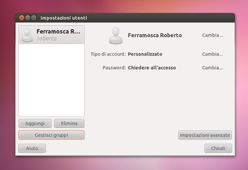 Tra le molte funzionalità mancanti che sono arrivate con il passaggio a Gnome 3 non troviamo più il buon vecchio Gestore degli account il quale ci permetteva oltre ad una migliore gestione degli utenti anche alcune utili funzionalità come ad esempio la gestione dei gruppi.